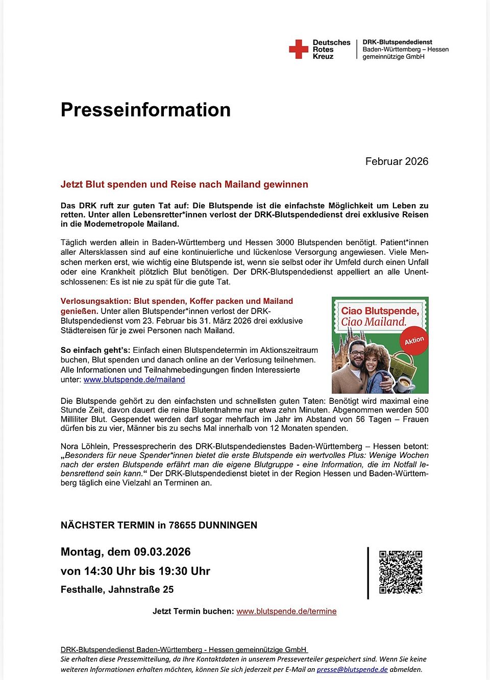 Am 9. März ist unser Frühjahrstermin für die Blutspende. Gern sind uns auch wieder zahlreiche Erstspender willkommen.